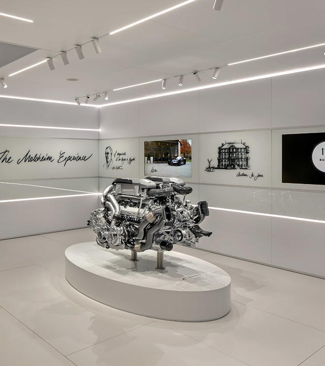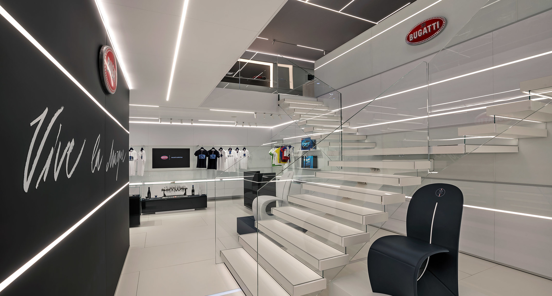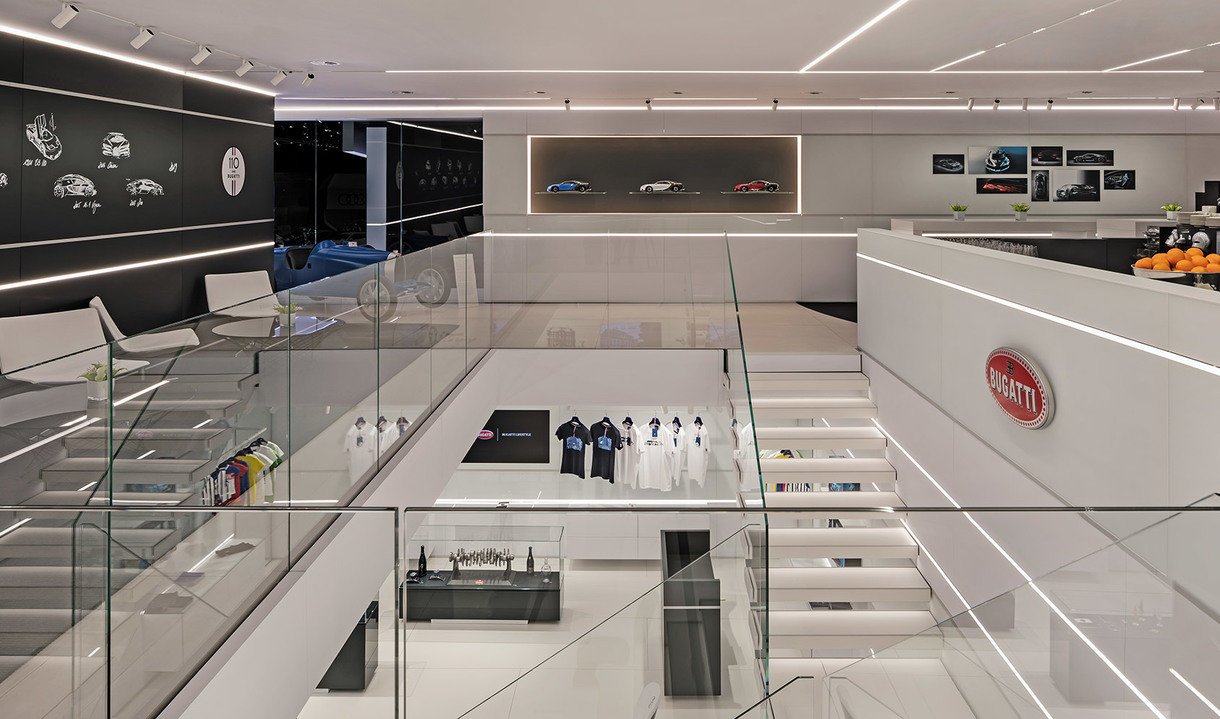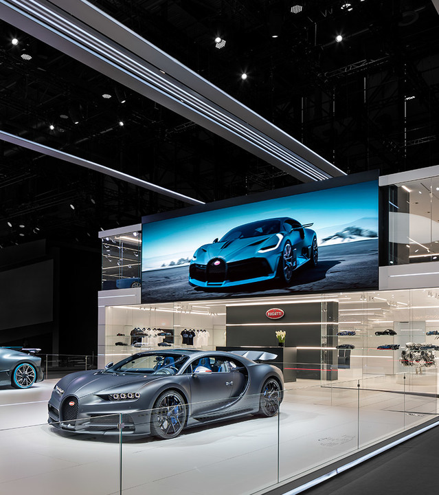 Artemide illuminates the Bugatti stand at the International Motorshow in Geneva with the innovative A.24 light system.