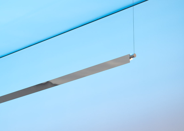Thirteen suspended elements, custom-made specifically for this project, are angled to create an iconic composition that engages in dialogue with Filarete’s Renaissance architecture, evoking mathematical symbols and essential forms.