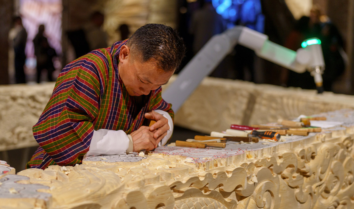 Artemide supports Ancient Future, the installation inspired by the façade of Gelephu International Airport in Bhutan. The work celebrates the dialogue between tradition and innovation through a wooden sculpture carved in real time by a Bhutanese craftsman and a robot guided by artificial intelligence. The project combines the mastery of traditional craftsmanship with the potential of emerging technologies, reflecting the aesthetics of the airport conceived as an “urban mandala”, a symbol between spirituality, sustainability and contemporary vision.