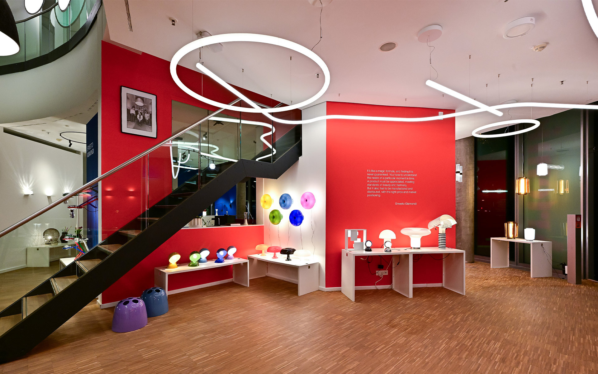 The opening also provided an opportunity to present a selection of novelties from the 2026 Collection, offering a first look at the evolving design direction of Artemide. Within the showroom, the products are displayed through dedicated lighting settings that accompany their narrative and highlight their identity, innovation and design quality.