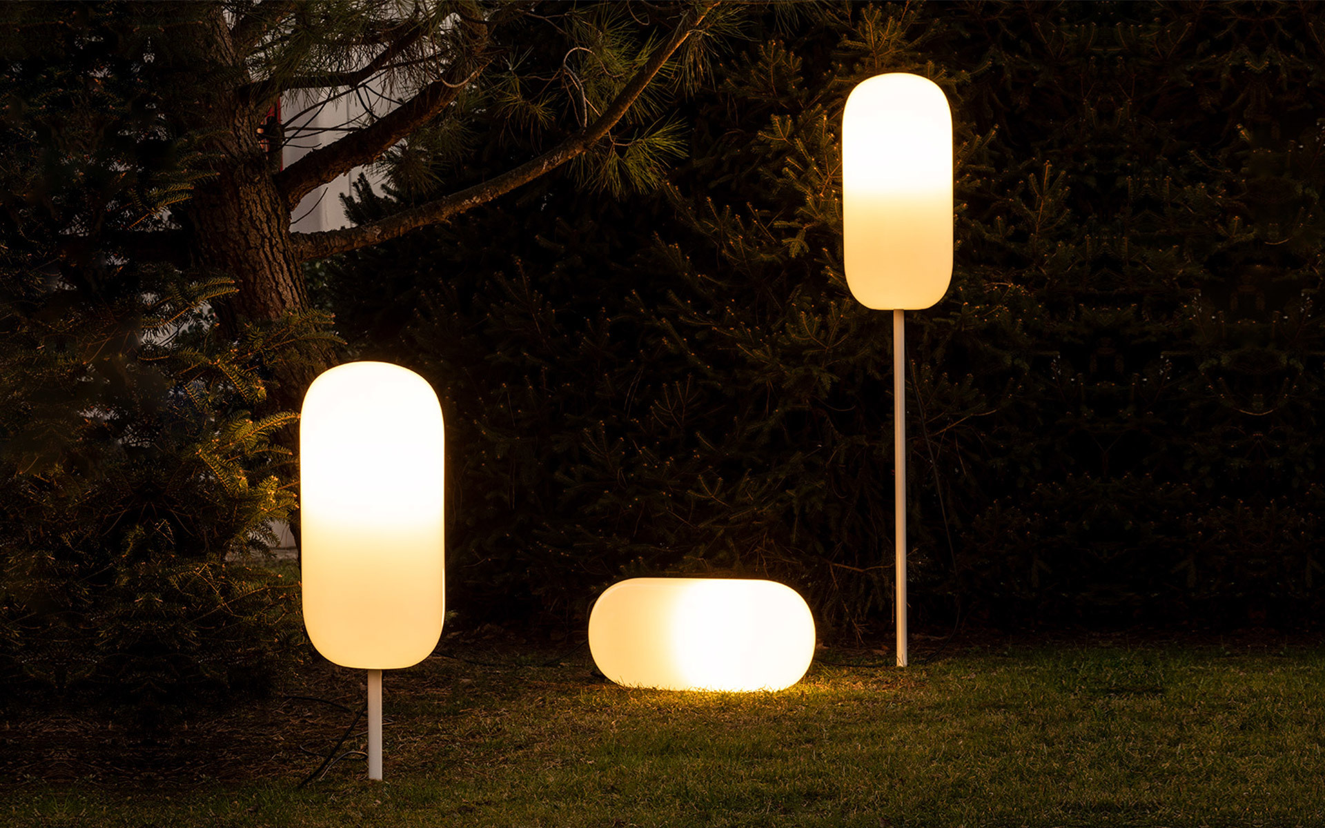 Starting from the iconic silhouette of the glass, it is declined in material dimensions and functionality to generate new ways of lighting: a potable lamp, an outdoor family, a track with spot that dialogues with the Alphabet of Light system.