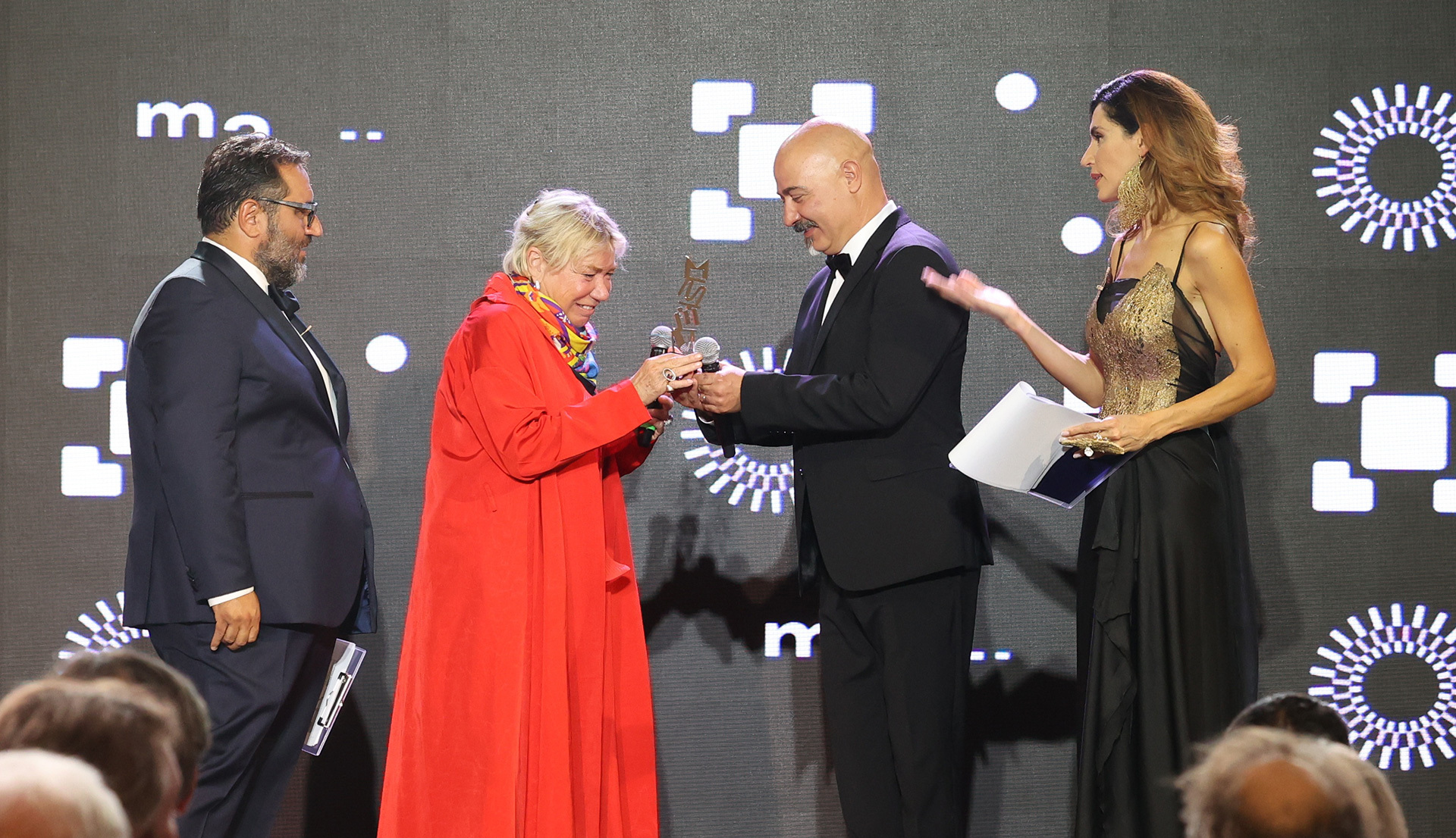 Carlotta de Bevilacqua while receiving the MANIBUS award