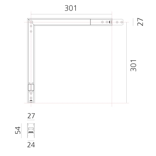 Each linear, angle and curved elements are provided with mechanical and electrical joints and installation accessories. End caps have to be ordered separately. Bracket for fixing to ceiling is included: 1 for 1176mm lenght or 2 for 2352mm lenght. Depending on the driver, the product can be undimmable or dimmable DALI.