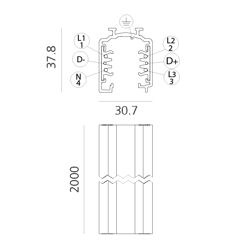 Track 230V External three-circuit track - Power supply end cap Earth conductor on the right. White
