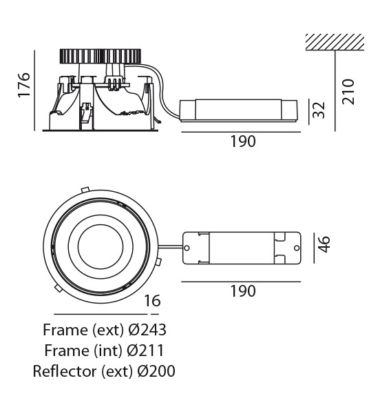 Power Kit Geo-LiFi - CC Mod=50% - 230x80x25h - Undimmable VLCcoding - The nominal flux for this application is halved