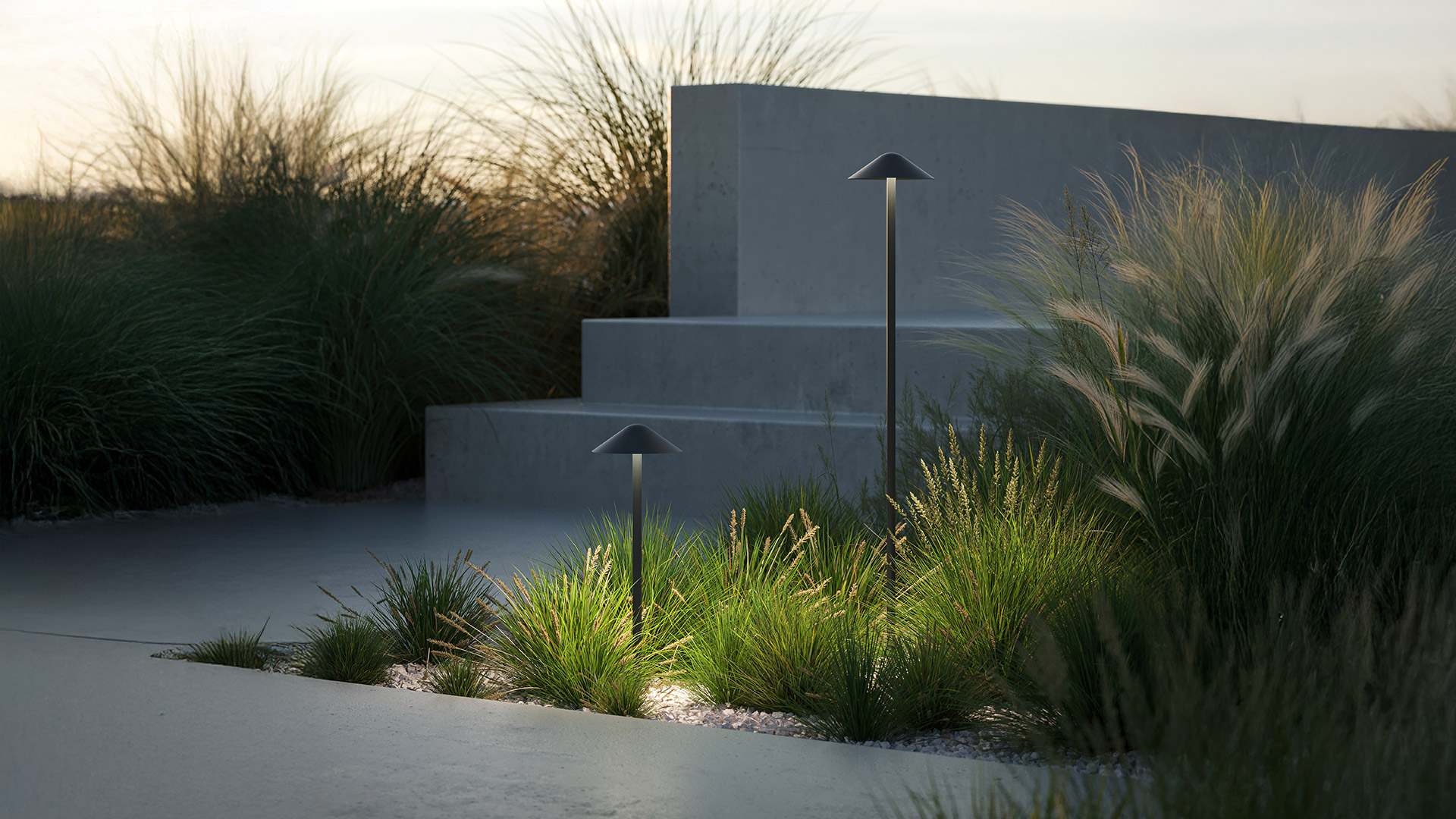 From Vea’s iconic conical shape come two bollard versions in different heights, designed to bring elegant and uniform lighting to green areas and pedestrian pathways.