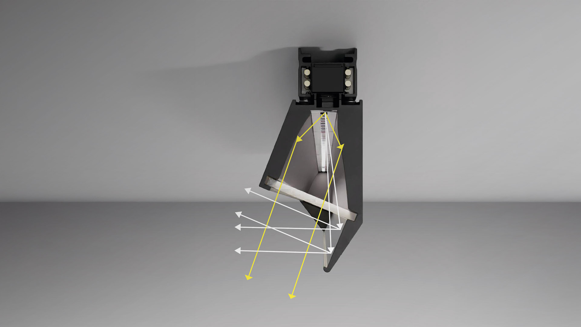 It provides particularly even wall illumination, reaching right to the top without casting shadows, even when the optical module is installed in the SMD versions of the systems.