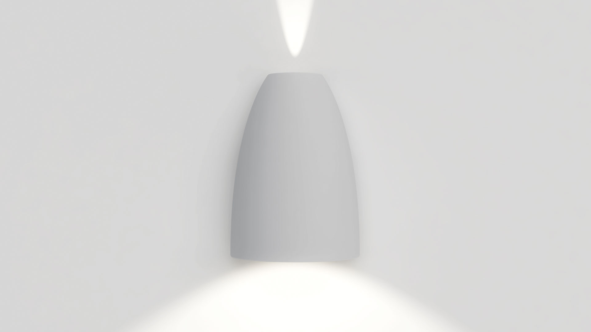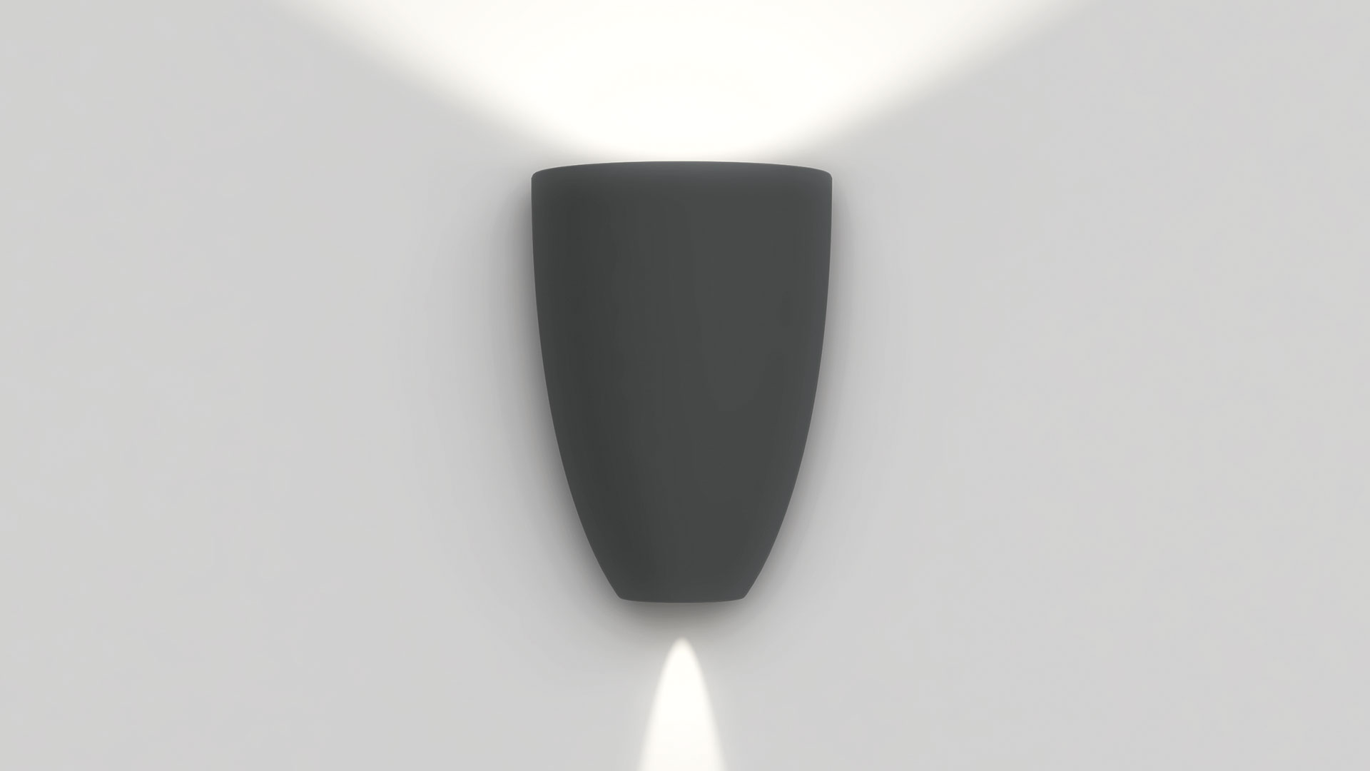 Light fixture with 2 combined light beams: the large one with lighting function and the narrow one with decorative function. Wall installation: the fixture can be installed with the main beam pointed either downwards or upwards according to the kind of lighting desired (direct or indirect).