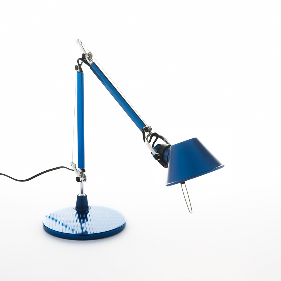 Interchangeable support: table base, clamp, desk fixed support and twin support that allows two indipendent lamp units to be fitted.Possibility to mount LED source on E14 Socket