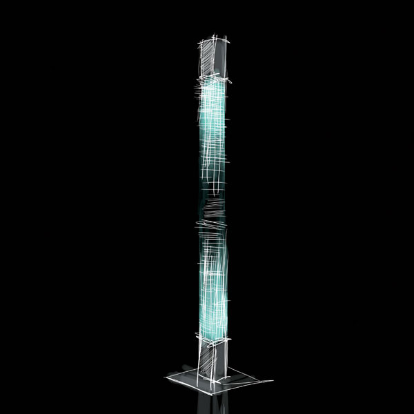 Base de acero, estructura de aluminio y tecnopolímero transparente grabado, reflector de aluminio