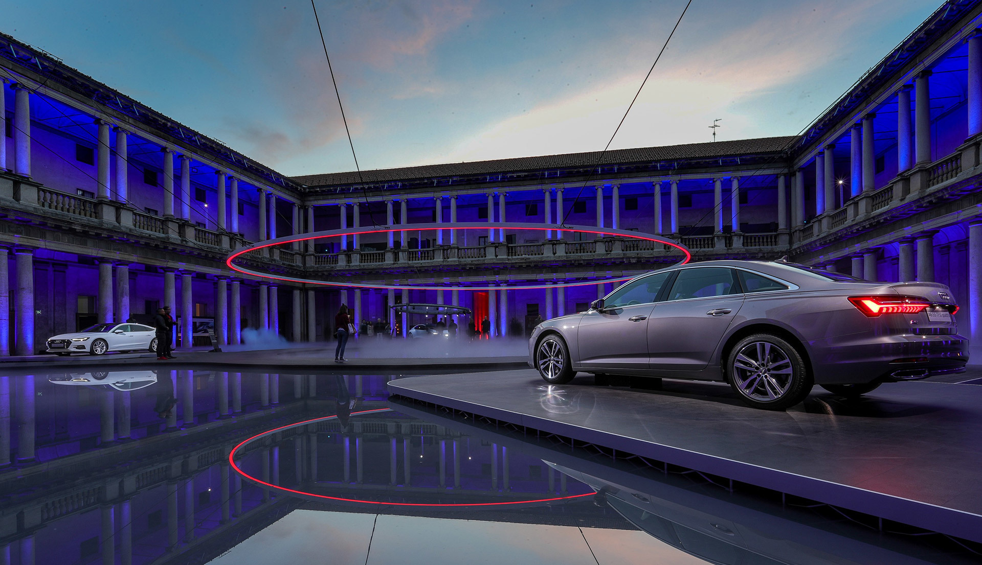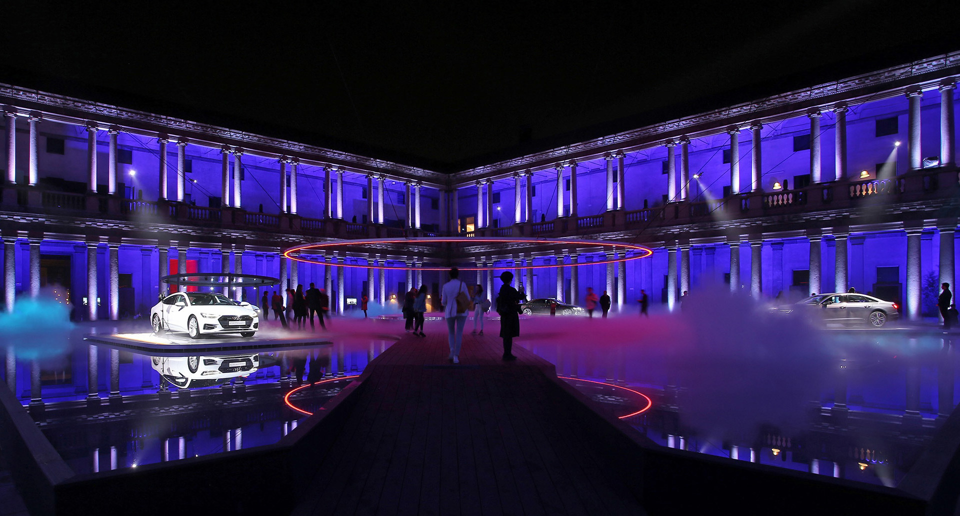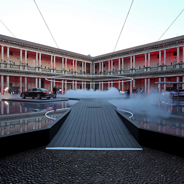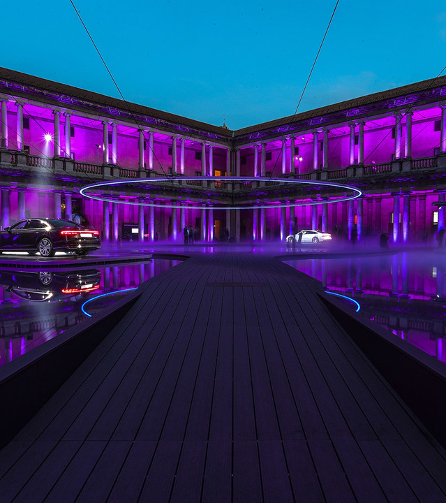 In this beautiful location, Audi offers its interpretation of the relationship between innovation and vision of the future. An impressive suspended ring, with a diameter of 19 meters, and mirrors of water, make up the installation called Fifth Ring. Developed by Artemide together with Mad Architects, the Fifth Ring, created from A.39, generates an evocative space in which energy, evolution and progress find their maximum visual expression. The public is therefore invited to immerse themselves in a futuristic landscape where light represents the link between the visitor and the circle, symbol of perfection.