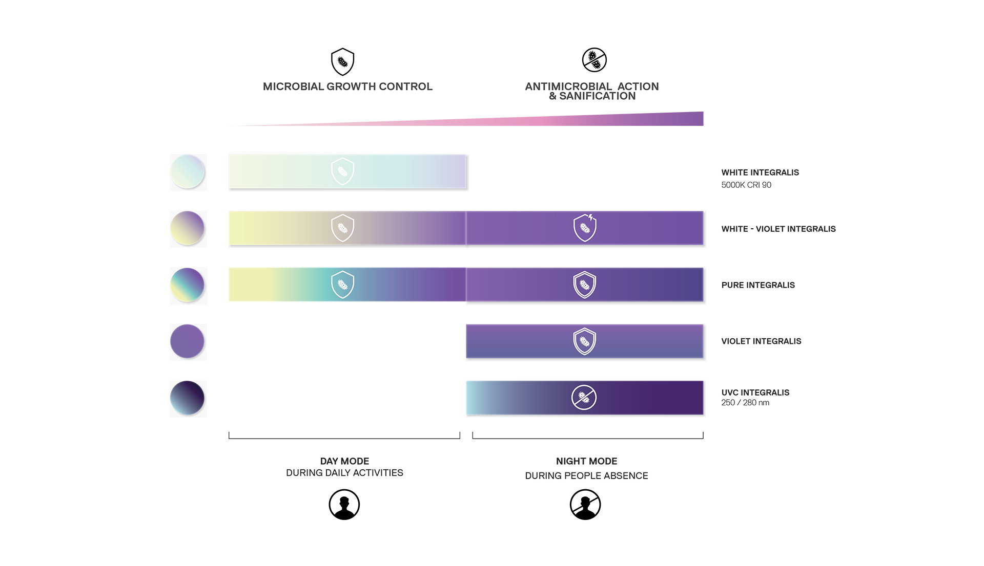 INTEGRALIS® est une typologie d’éclairage innovante, qui désinfecte les espaces et qui s’intègre parfaitement dans la gamme des produits des collections Artemide.