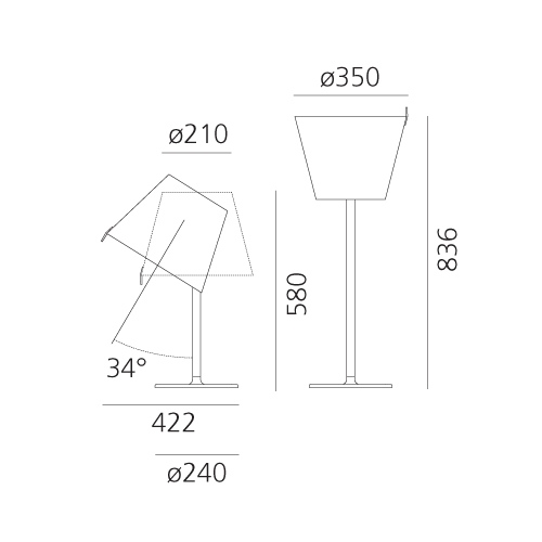 Base en zamac peint, tige en aluminium peint, diffuseur en techno-polymère recouvert de satin de soie