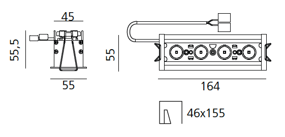 Power Kit Geo-LiFi - CC Mod=50% - 230x80x25h - Undimmable VLCcoding - The nominal flux for this application is halved