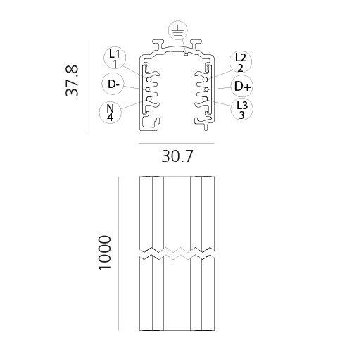 Track 230V External three-circuit track - Power supply end cap Earth conductor on the right. White