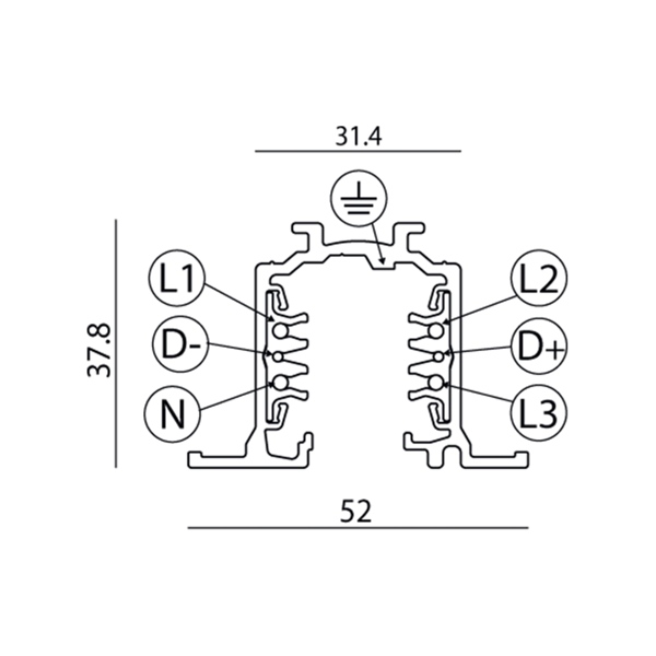 Track 230V Recessed three-circuit track - Power supply end capEarth conductoron the left. Black