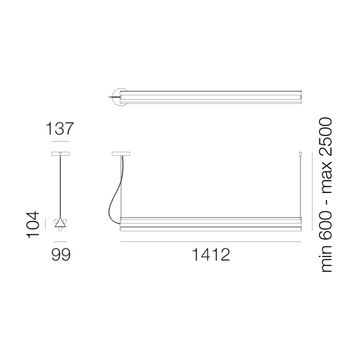 Dreispitz - Suspension Horizontal - 3 Diffused Emission - 150 - Silver