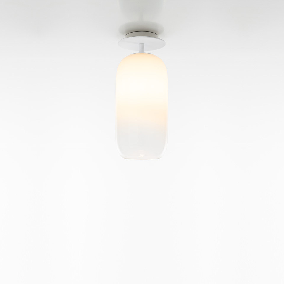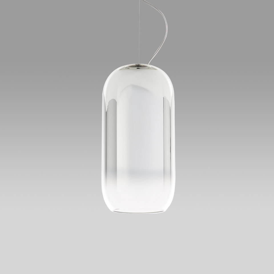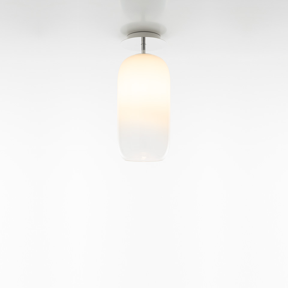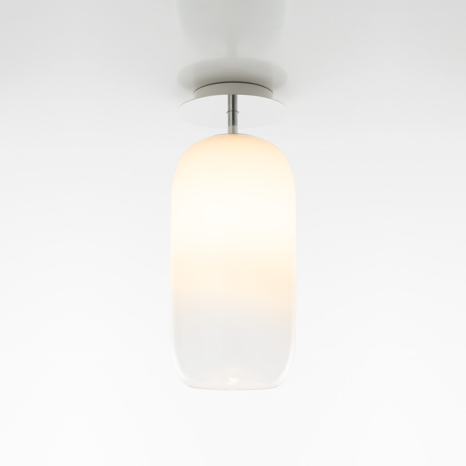 La forme élémentaire du Gople met en valeur la beauté du verre soufflé à la main. La version blanche est réalisée selon une ancienne technique vénitienne qui nuance le verre blanc en cristal en les unissant pendant le soufflage et en rendant ainsi chaque pièce unique.