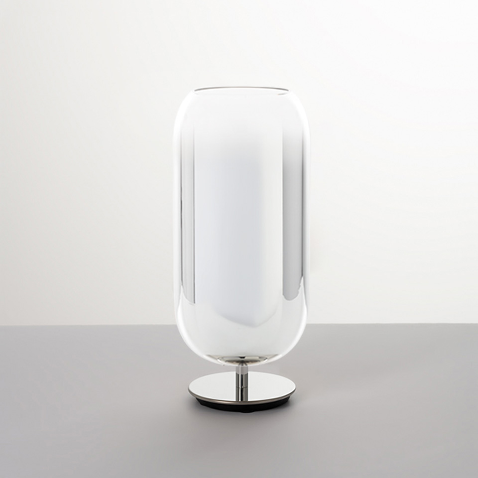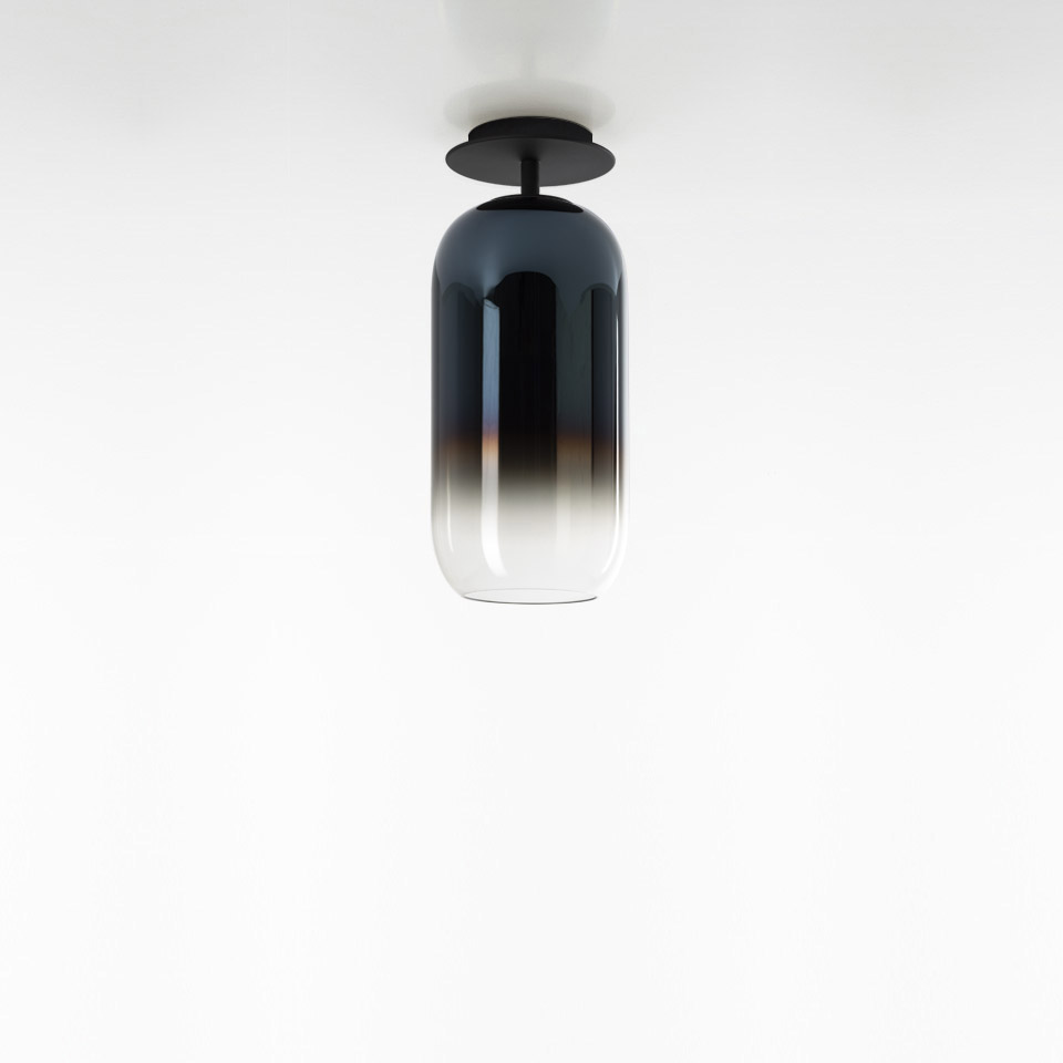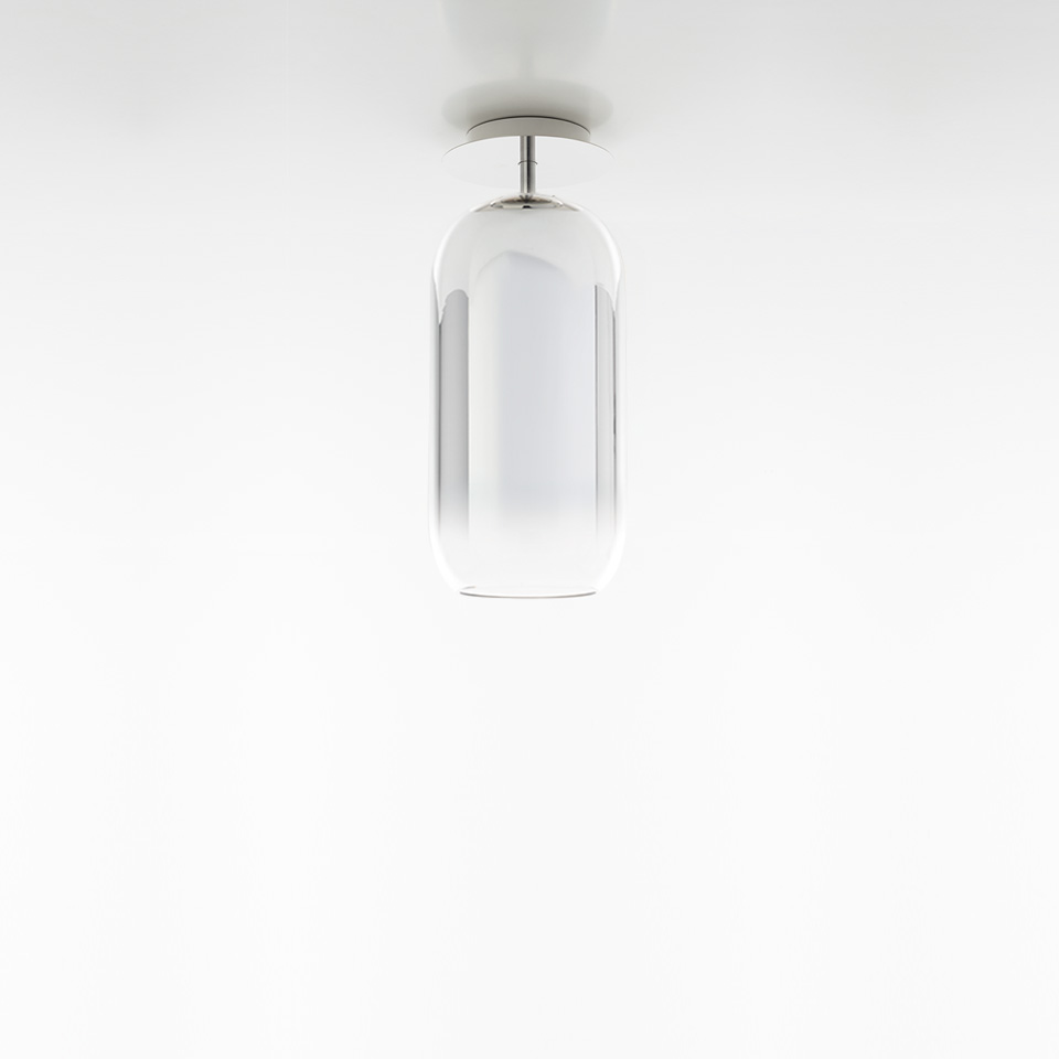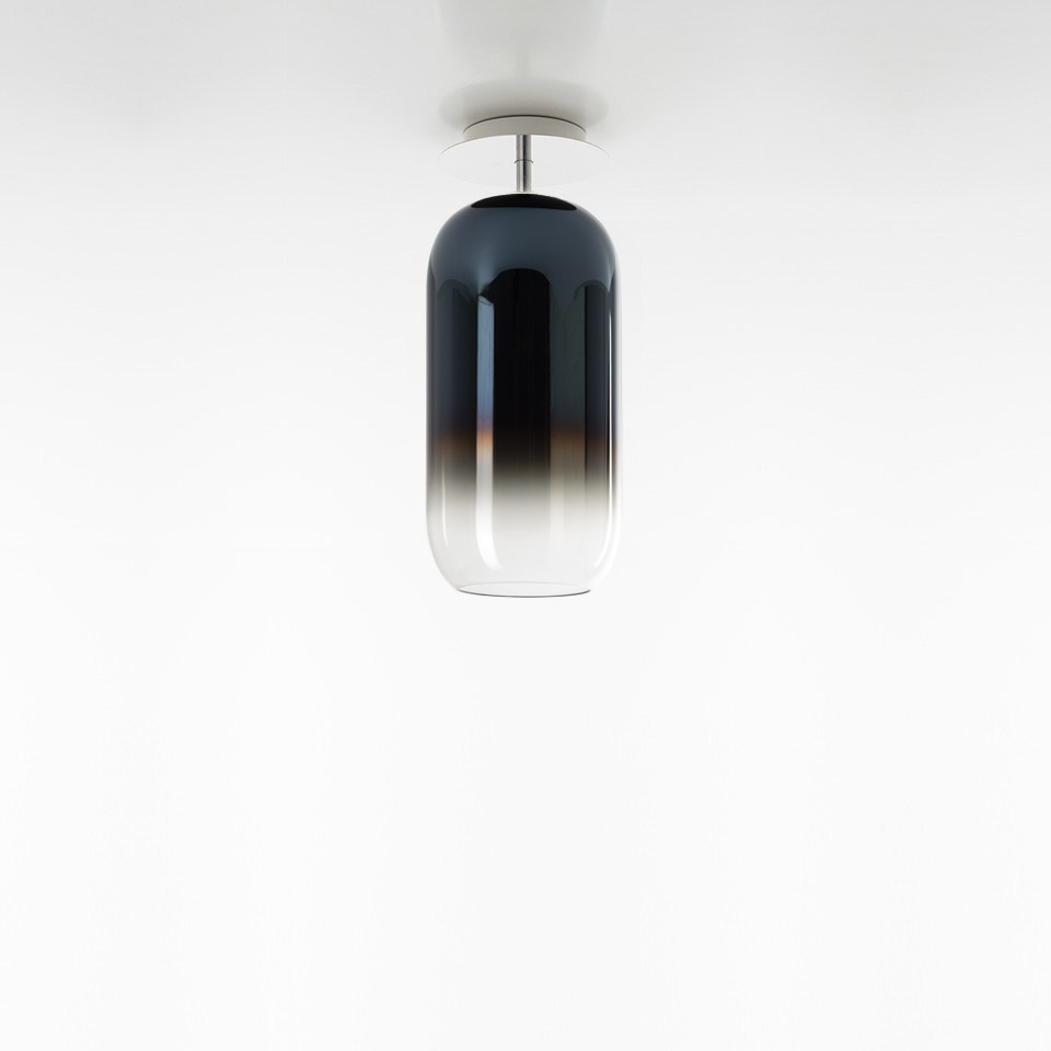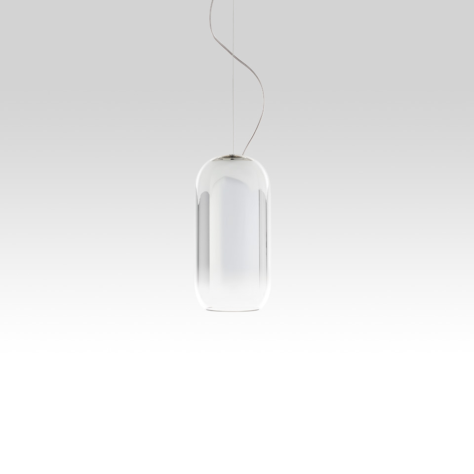 La forme élémentaire du Gople met en valeur la beauté du verre soufflé à la main. La version blanche est réalisée selon une ancienne technique vénitienne qui nuance le verre blanc en cristal en les unissant pendant le soufflage et en rendant ainsi chaque pièce unique.