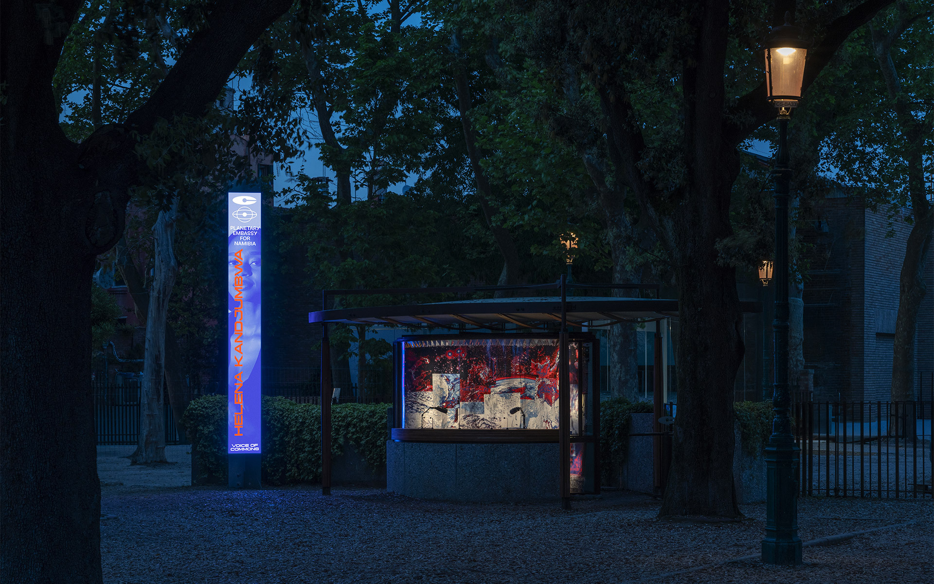 Lo spazio è trasformato nella Planetary Embassy, un’ambasciata simbolica dei Global Commons – l’Antartide, l’Oceano, l’Atmosfera e lo Spazio – elementi vitali per la vita sulla Terra, ma attualmente privi di rappresentanza politica e giuridica. Il progetto è una riflessione sulla necessità urgente di dare loro una voce e promuovere un modello di governance condivisa a livello planetario.