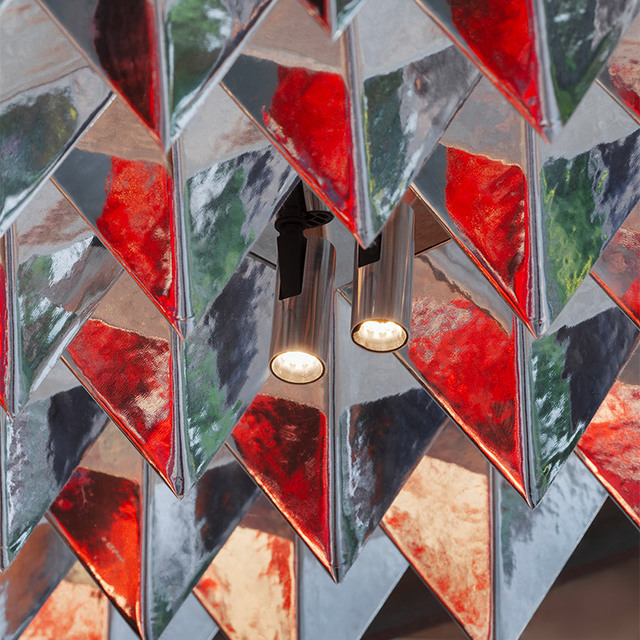 La luce diventa così strumento di consapevolezza pubblica: non solo accompagna la fruizione visiva dall’esterno, ma amplifica il messaggio ambientale e sociale alla base del progetto.