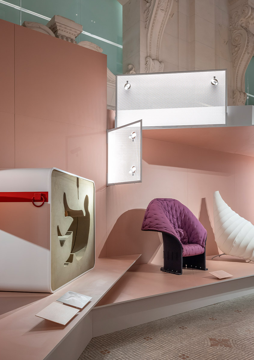 Il progetto di illuminazione, nato dalla stretta collaborazione con Italo Rota, alla cui memoria è dedicata la mostra, e Alessandro Pedretti, trasforma la luce in un elemento narrativo essenziale, contribuendo a esplorare il tema dell’evoluzione dell’intimità nella società.