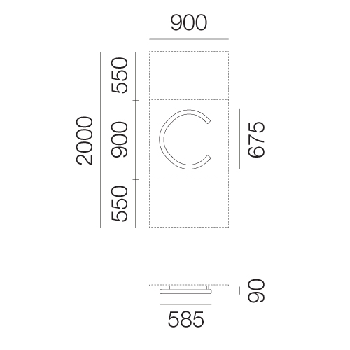 Supporto in alluminio, elemento diffondente in tecnopolimero opalino.