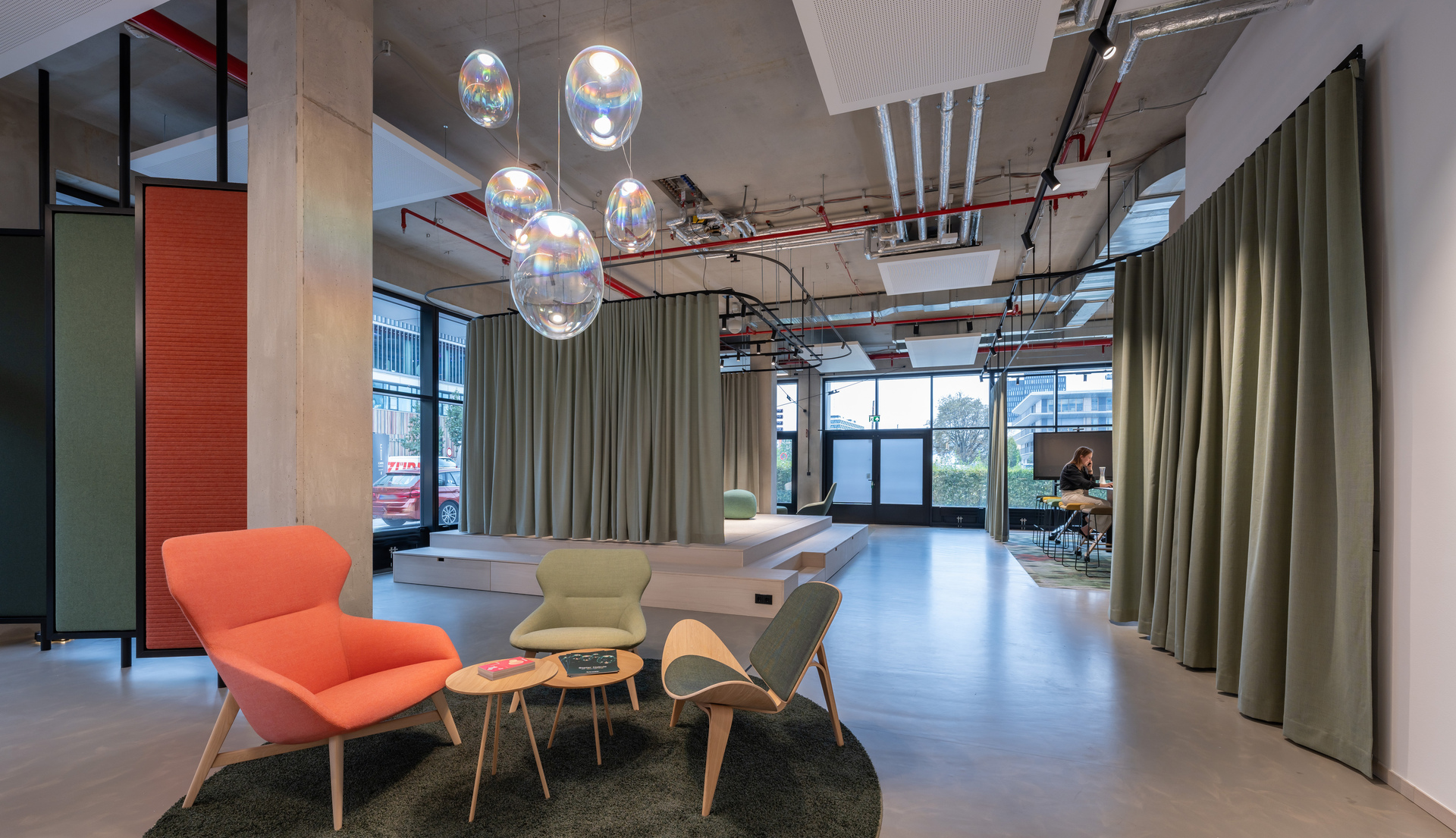 Il fulcro di ogni sede IDX è il palco, punto focale per presentazioni e discussioni, con possibilità di utilizzo come area per i mock-up. Artemide, leader nel design dell’illuminazione, contribuisce con la sua avanzata tecnologia illuminotecnica adottando un approccio responsabile nei confronti dell’ambiente.
