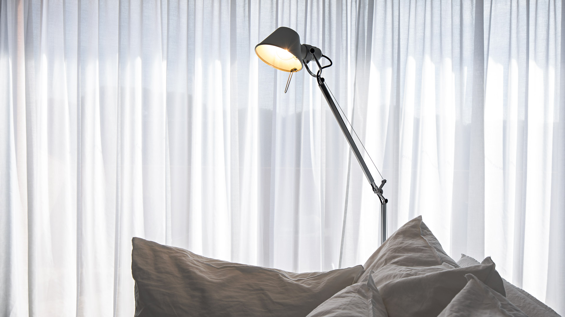 Il design della Tolomeo è caratterizzato da linee pulite e minimaliste, con una struttura realizzata in alluminio. Questo materiale conferisce alla lampada non solo un aspetto moderno e sofisticato, ma anche una notevole leggerezza e robustezza.