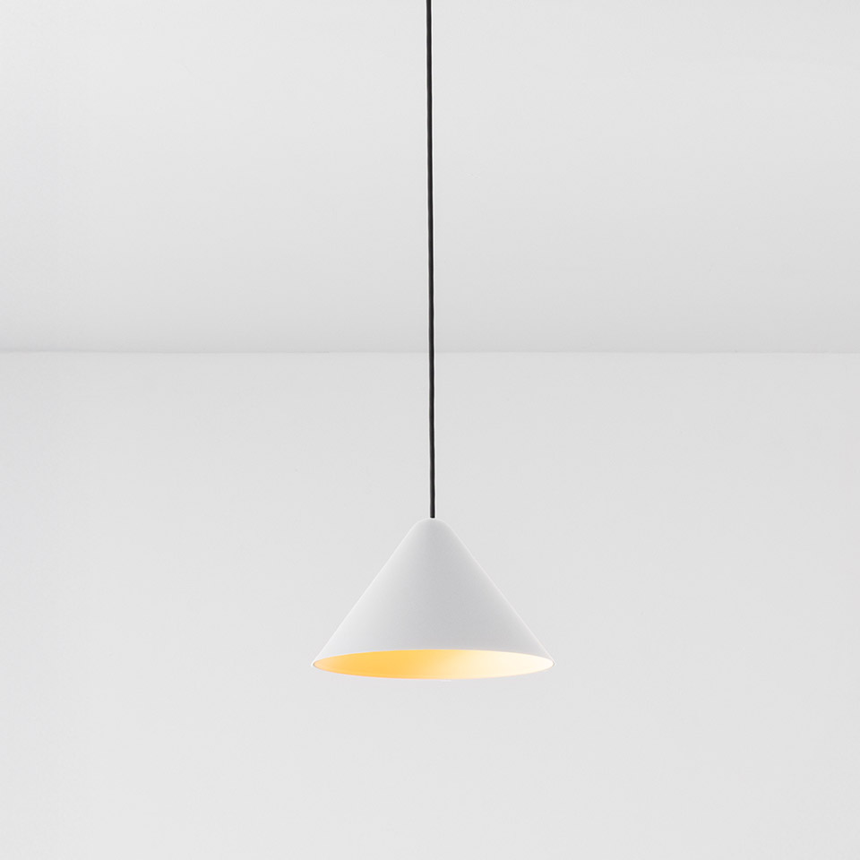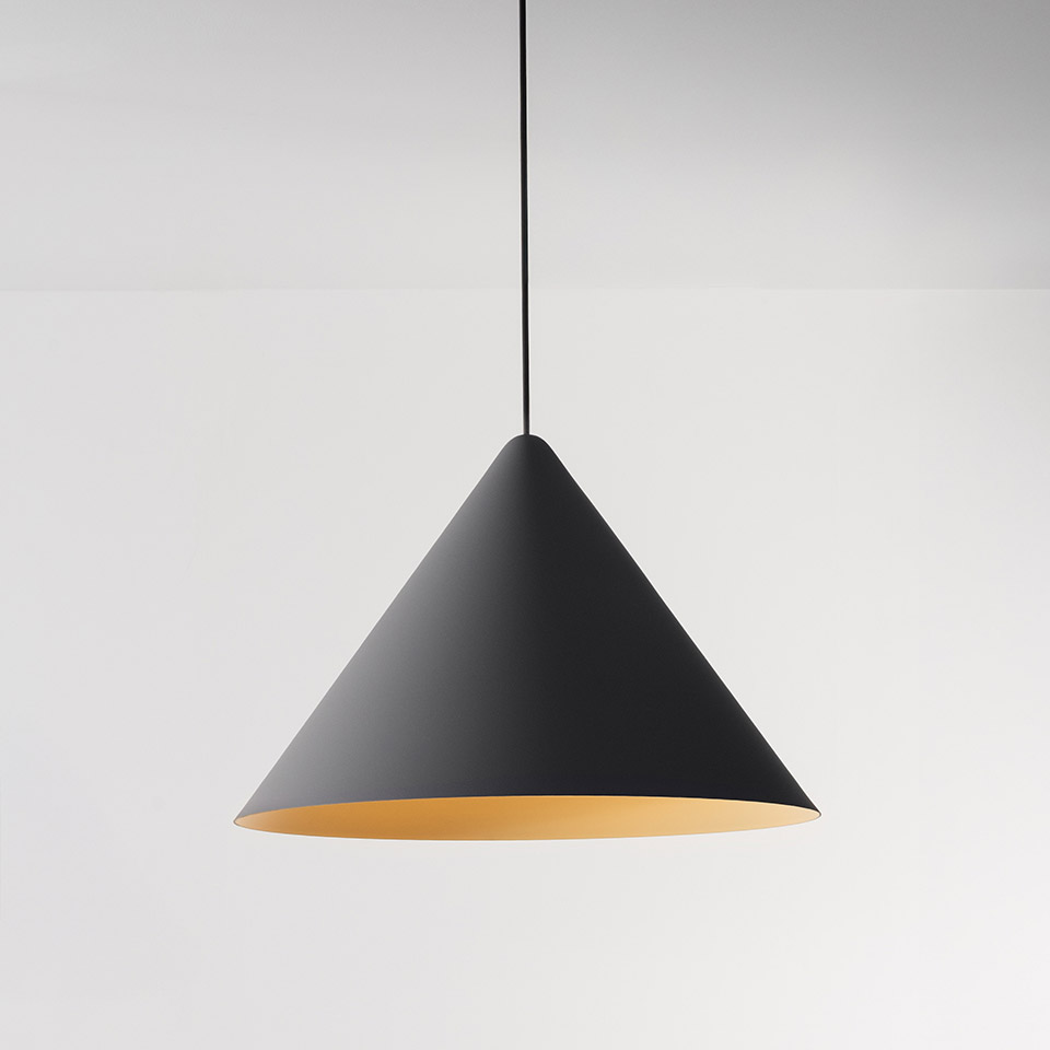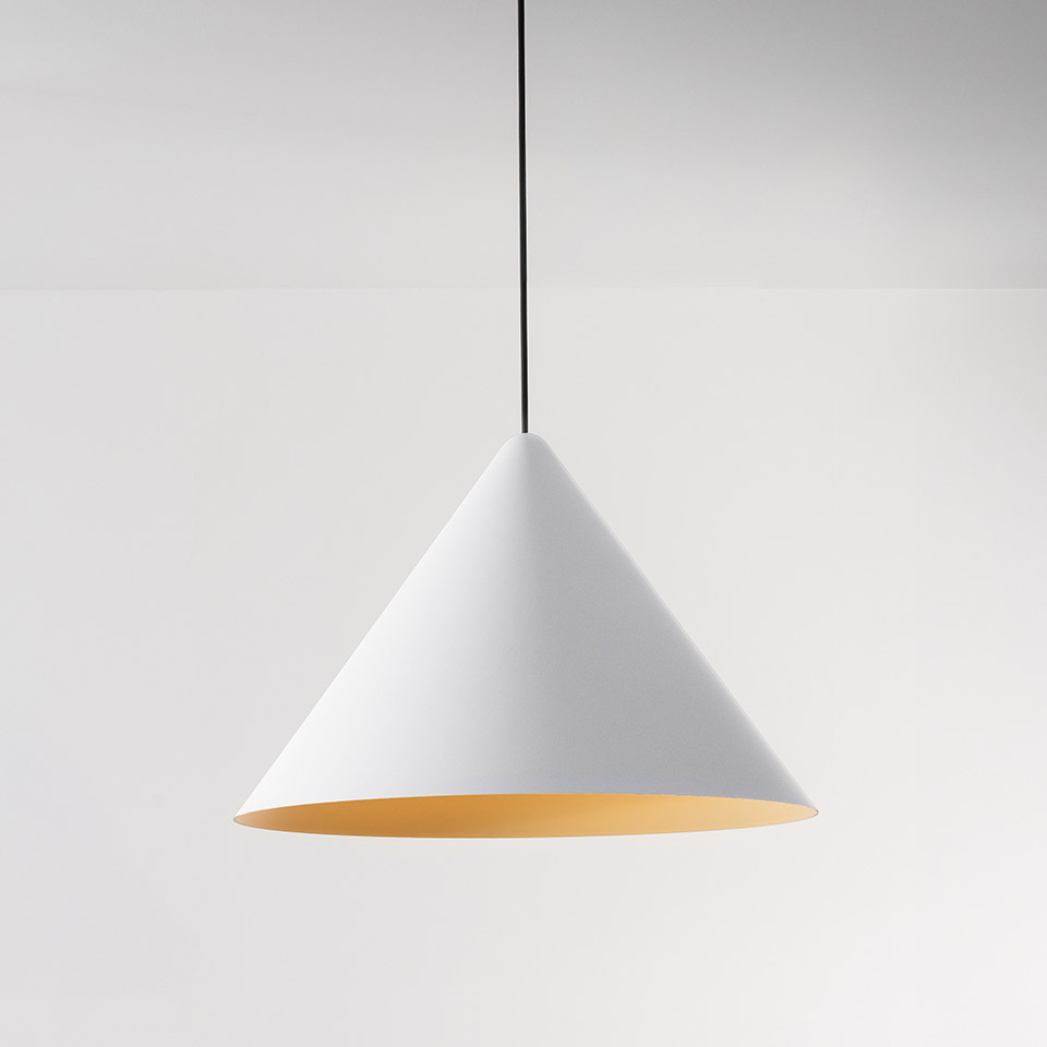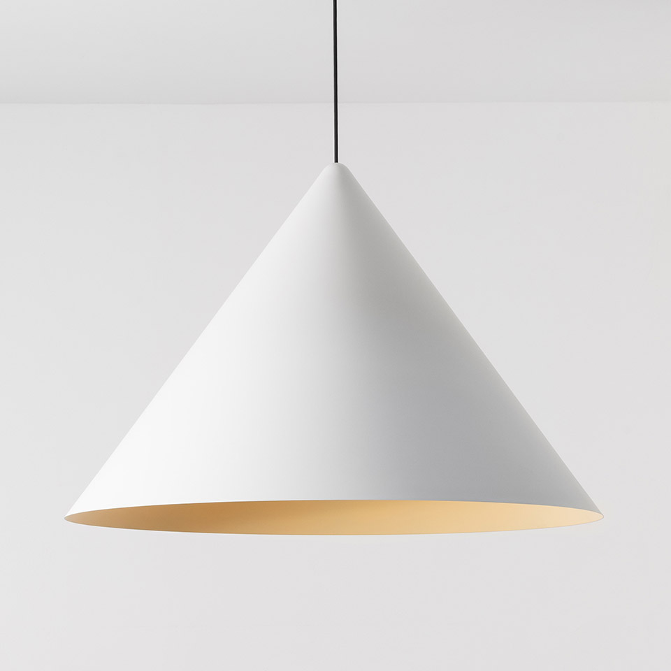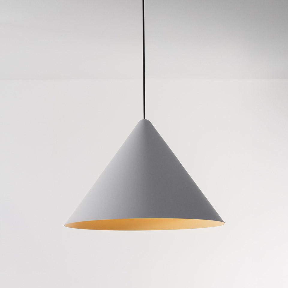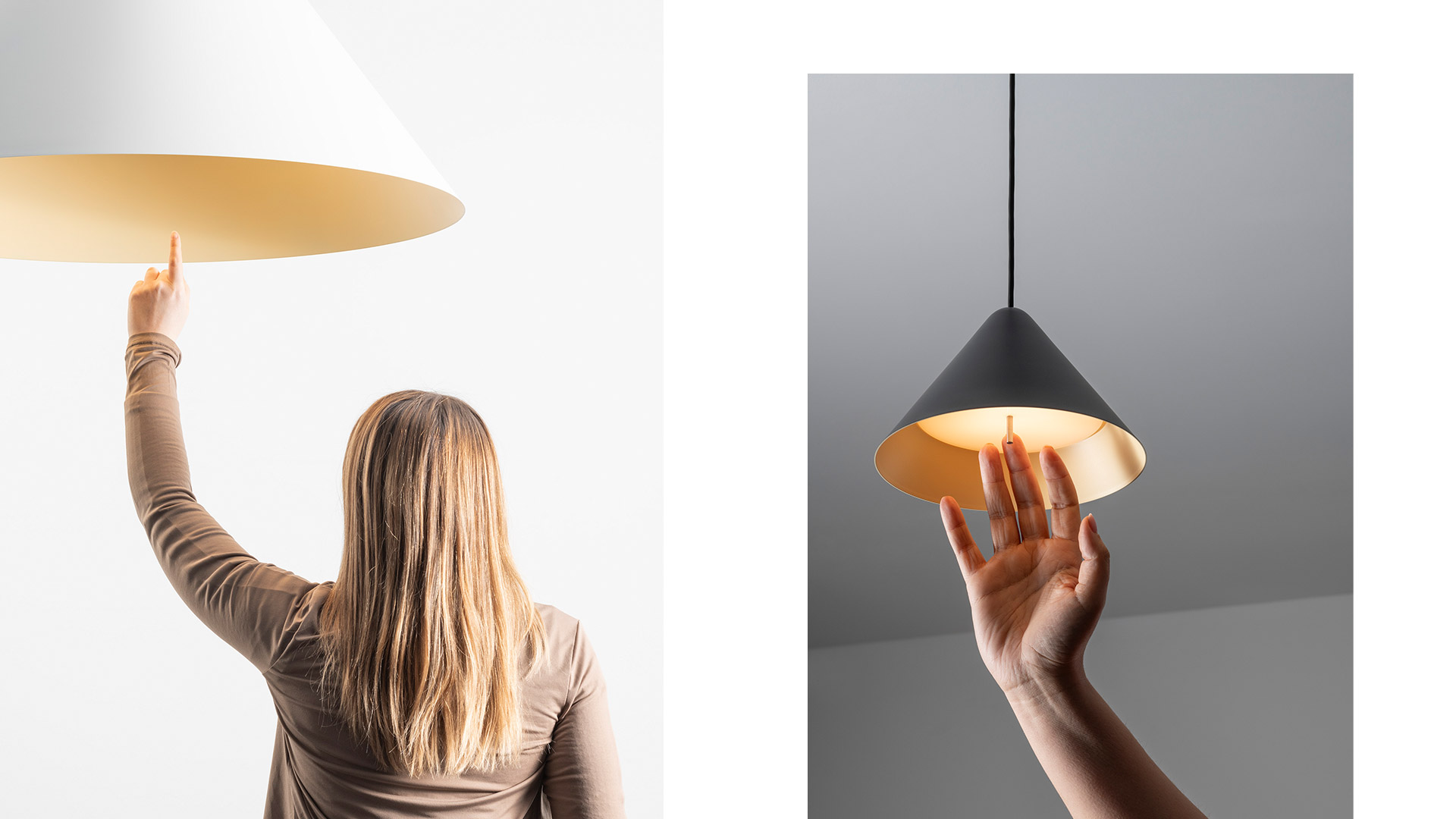Vea suspension presenta una forma conica essenziale che ne esalta la ricchezza percettiva. Il diffusore incassato accoglie al centro un sottile cilindro metallico che consente la regolazione diretta dell’intensità luminosa.