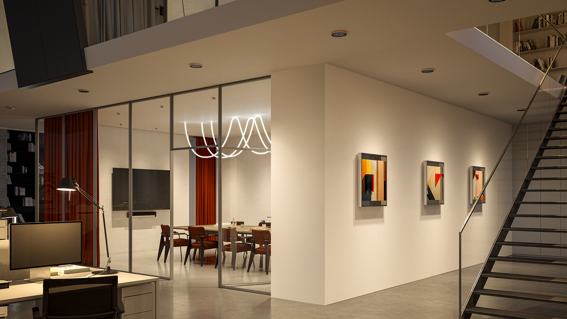 Disponibile in diverse versioni per installazione a soffitto, a incasso o con braccio orientabile, si adatta a molteplici contesti architettonici e dialoga con altri sistemi della collezione, come Sylt.